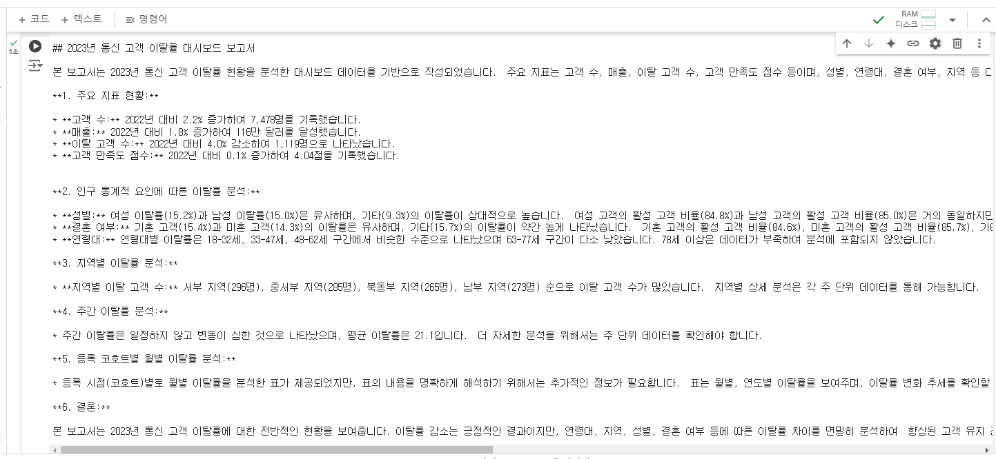 prompt = """이 대시보드에 있는 차트를 확인하고 주요 내용을 요약해서 레포트 형식으로 작성해줘.